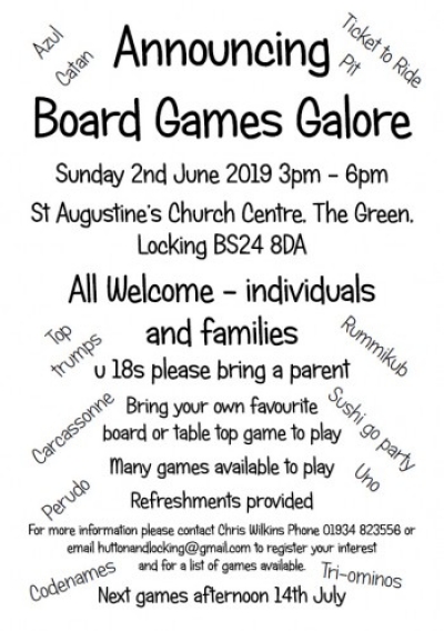 Following a discernment interview, and being accepted onto the CMS Certificate in Pioneer Mission, I am proposing to start a regular monthly board and table top gaming group, meeting in the Church Centre on a Sunday afternoon from 3 – 6pm. It will be aimed at families (similar to Messy Church - so that there will be no unaccompanied children and subsequent child protection issues) and also anybody over the age of 18. This will give the opportunity for elderly single people to meet others, have fun and make intergenerational friendships, as well younger people to have fun and socialise face to face. Board Gaming will also be suitable for those who are not into sports and prefer quiet thoughtful challenging activities with rules and guidelines. Gaming also provides the opportunity for conversations, where faith can be shared. There will be church magazines available and other Christian literature (as we do at Messy Church) but this will not be pushed. The idea being similar to Men’s Breakfast, in that friendships are formed and the opportunity for further Christian contact and teaching available.
