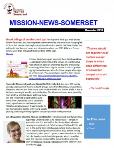 Please download the Somerset Churches Together Monthly Newsletter - as usual for the month of December this is an abridged edition.