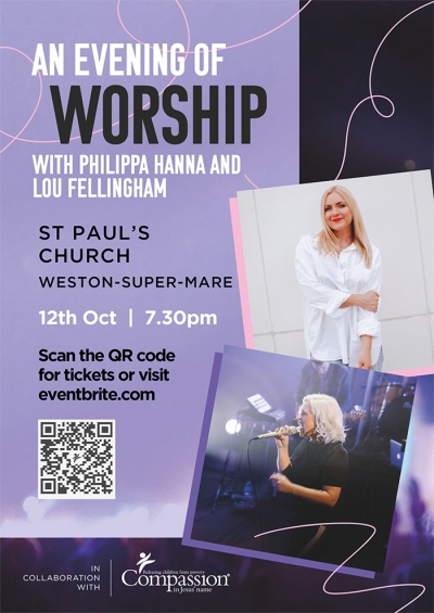 The Revd. Craig Philbrick, Vicar of St. Paul’s, said "It isn’t often that worship leaders like Lou and Philippa come to a place like Weston Super Mare. So, we’re looking forward to such a great evening where, with the help of people from across Somerset and the South West, we can help Compassion to change so many lives across Africa and Asia."