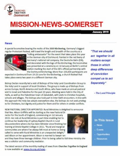 Please download the Somerset Churches Together Monthly Newsletter - for the month of January, 2019